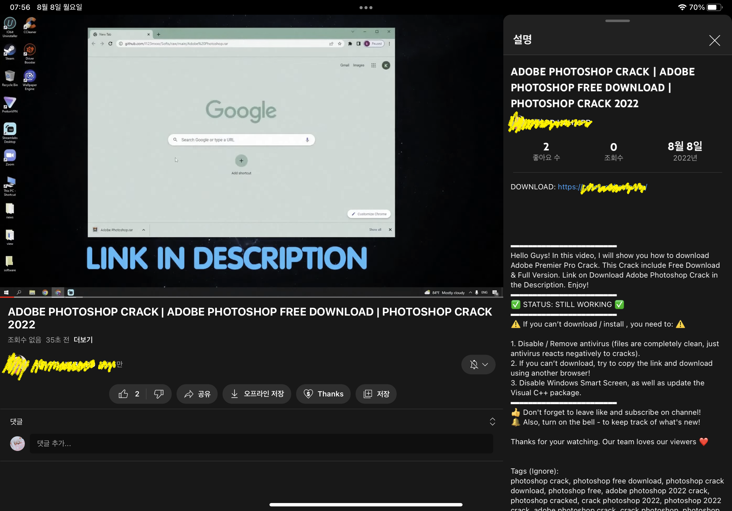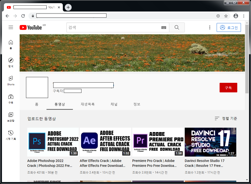 유료 소프트웨어를 무료로 얻는 사람을 대상으로 했으며 아래와 같이 평소와 다른 영상이 업로드된다.