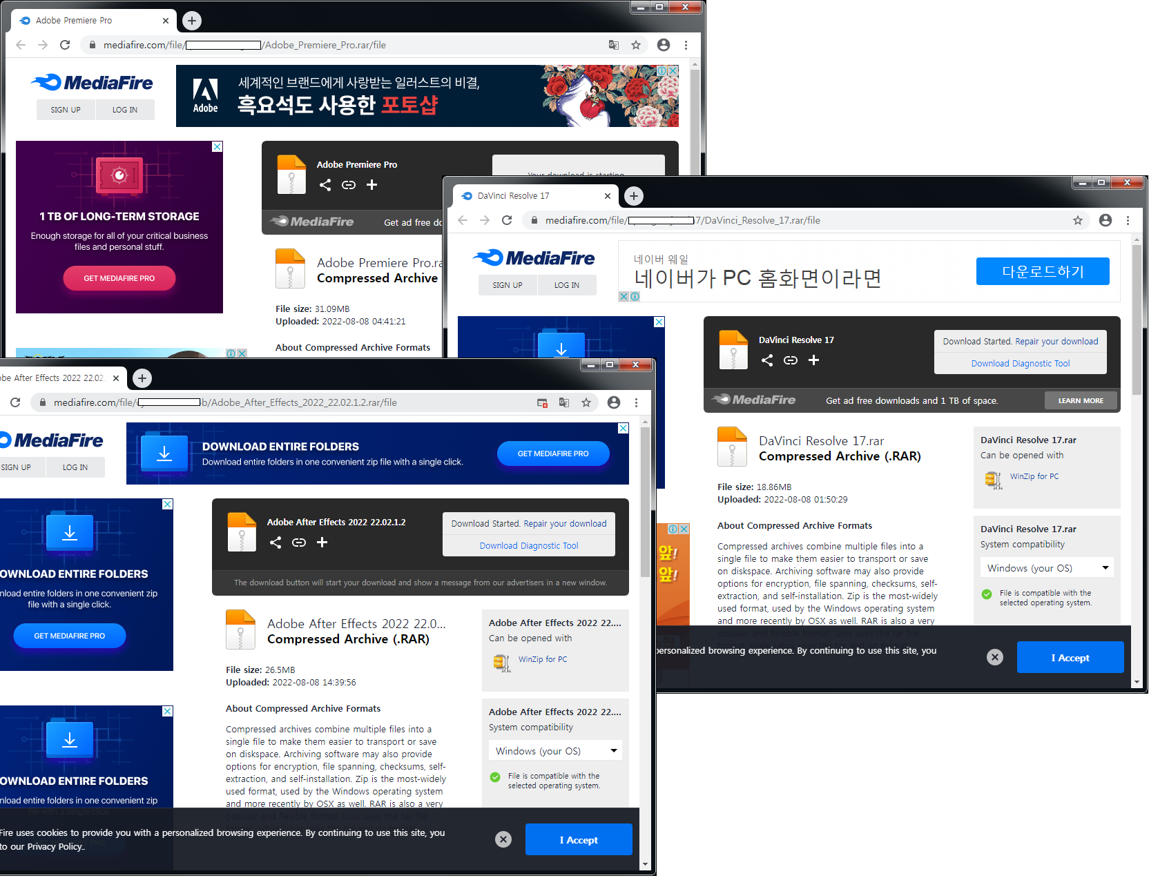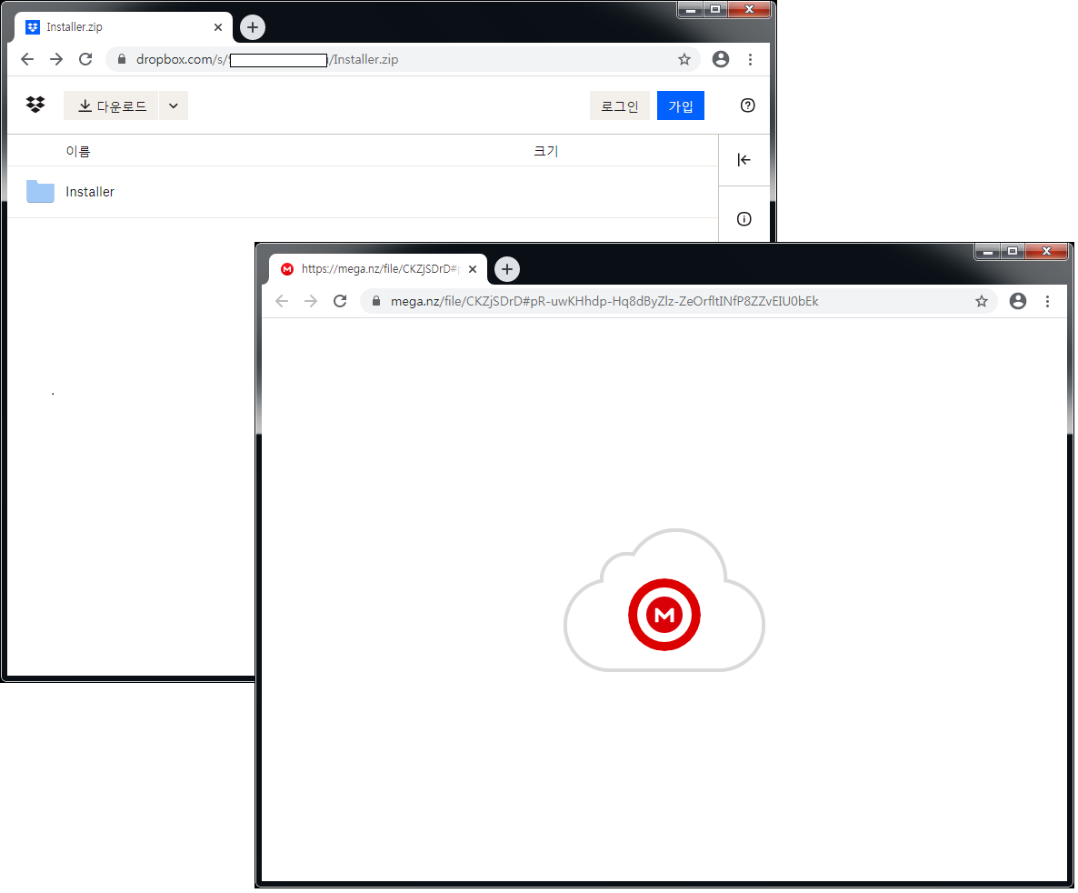 미디어파이어, 드롭박스, 메가에 호스팅되어 유포되는 파일은 아래와 같다.