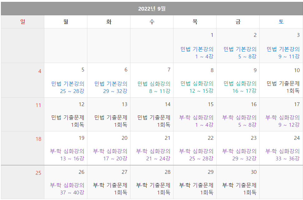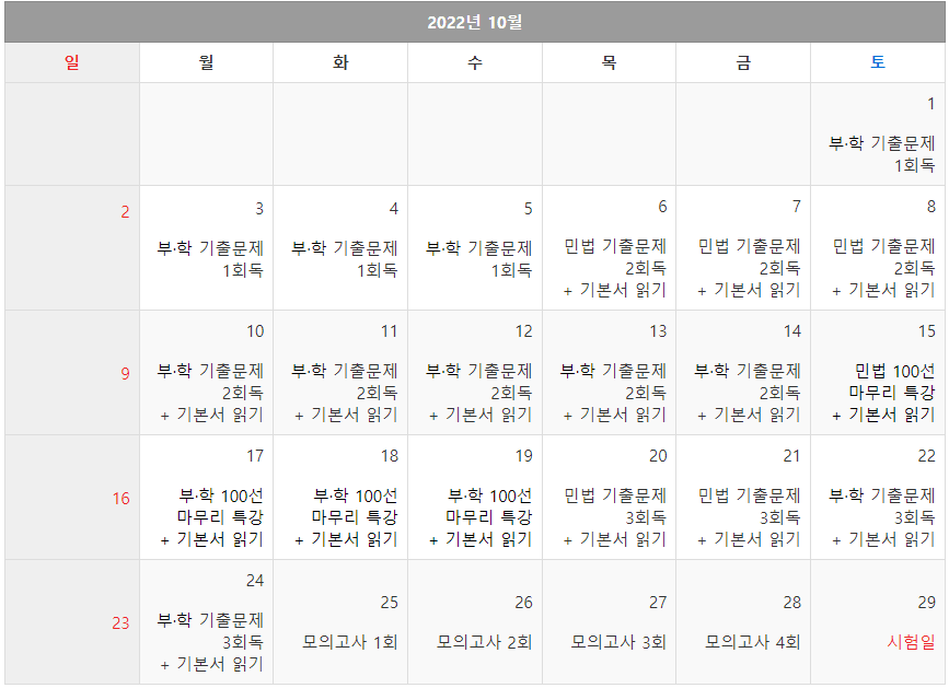 9월이 되니 시험까지 앞으로 2달밖에 남지 않았기에 제 상황에 맞게 공부계획을 짰습니다.