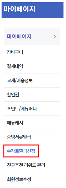 1. 에듀윌 마이페이지 내 "수강료환급신청"