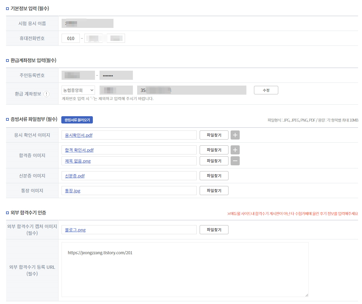 ⑤외부 합격수기 캡쳐 이미지 및 URL까지 등록하면 완료이다!